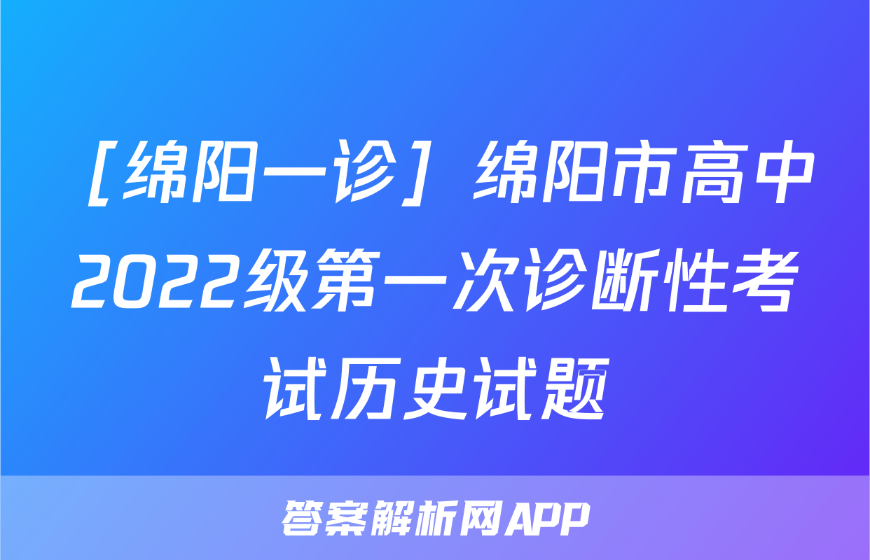 <p>1、[绵阳一诊]绵阳市高中2022级第一次诊断性考试历史试题</p><br><p><p>1、2024年绵阳市高中2021级第三次诊断性考试(绵阳三诊)答案(物理)</p><br><p><p>1、...