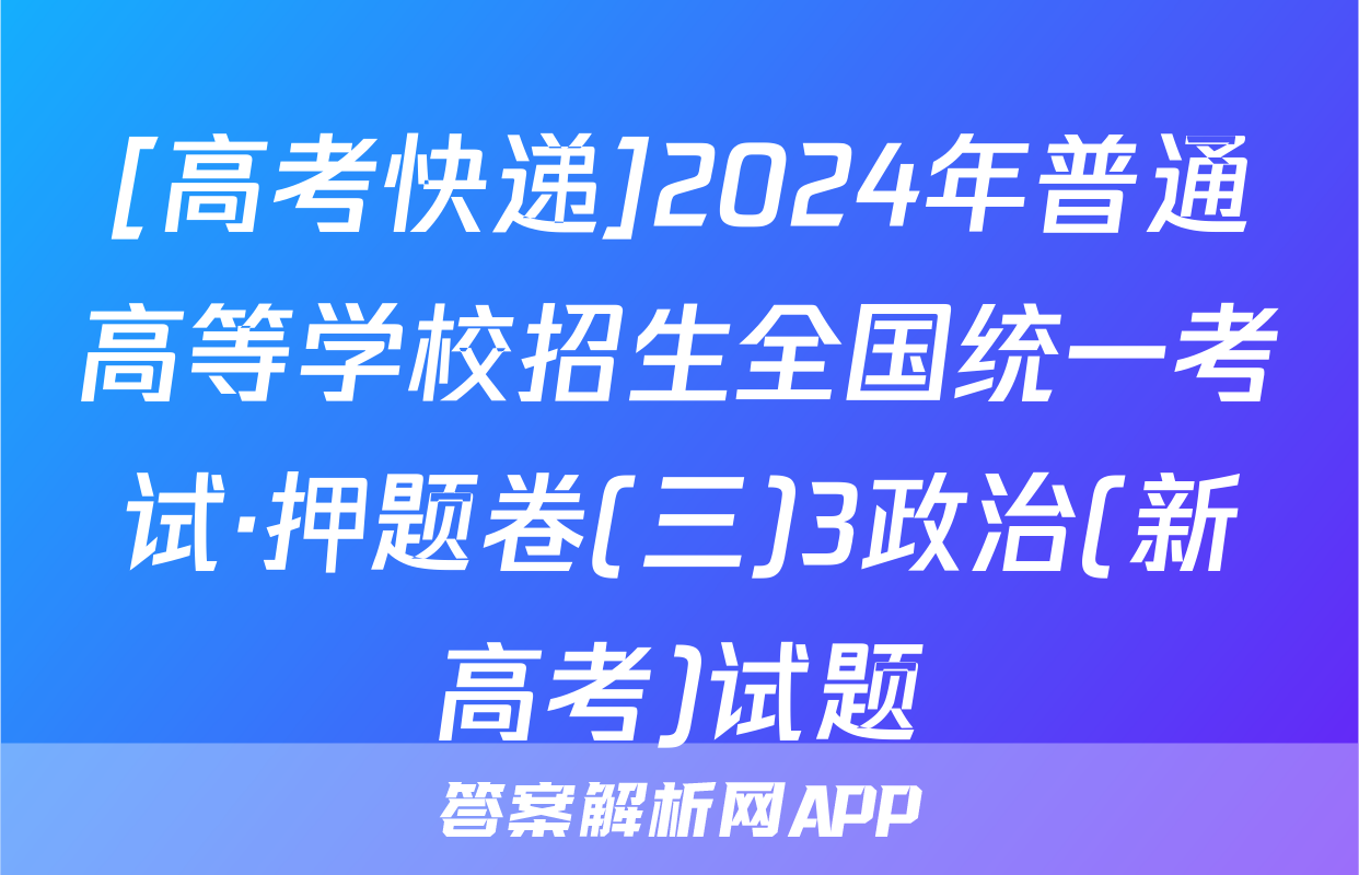 [高考快递]2024年普通高等学校招生全国统一考试·押题卷(八)8政治(新高考)答案