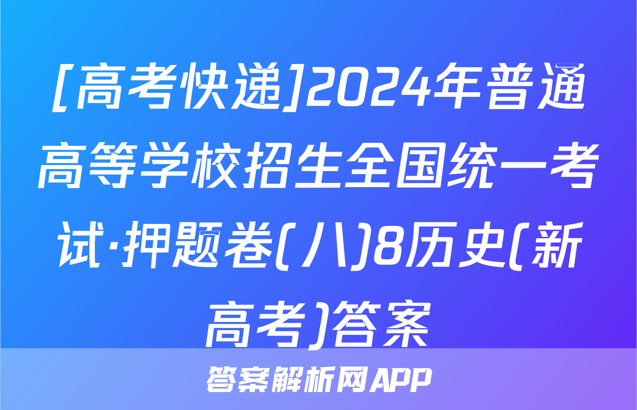 <p>1、[高考快递]2024年普通高等学校招生全国统一考试·押题卷(八)8历史(新高考)答案</p><br><p><p>1、[高考快递]2024年普通高等学校招生全国统一考试·押题卷(八)...