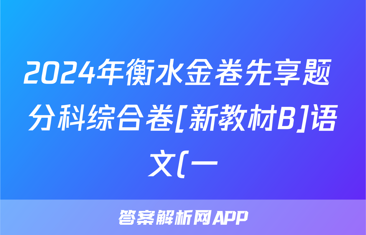2024年衡水金卷先享题 分科综合卷[新教材B]语文(一)1答案正在持续更新,目前2025衡水金卷单元卷答案网为大家整理了相关试题及答案,供大家查缺补漏,高效提升成绩。