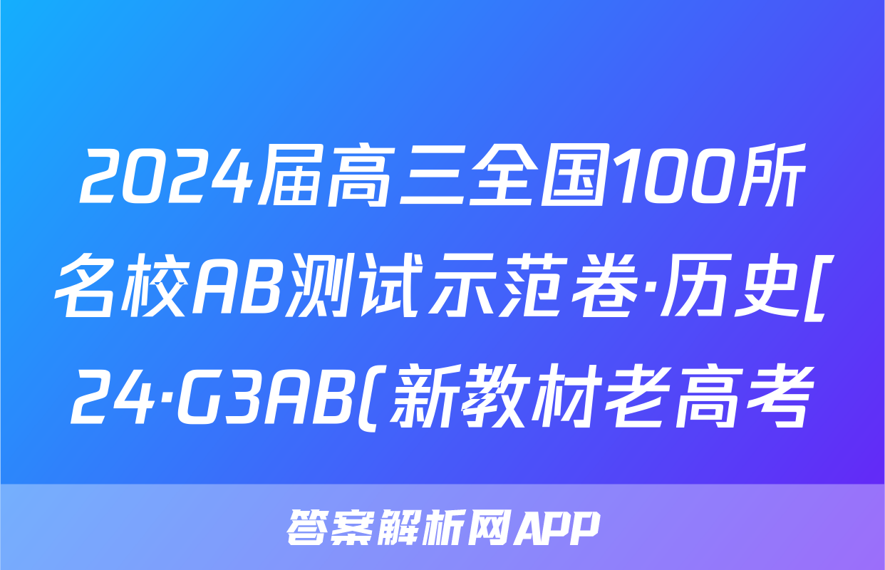 2024届高三全国100所名校AB测试示范卷·历史[24·G3AB(新教材老高考)·历史-R-必考-SD]四试题正在持续更新,目前2025衡水金卷单元卷答案网为大家整理了相关试题及答案,供大家查缺补漏,高效提升成绩。