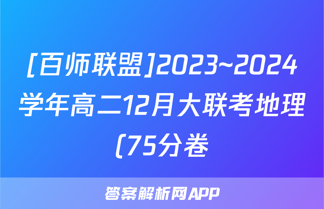 [百师联盟]2023~2024学年高二12月大联考地理(75分卷)试题正在持续更新,目前2025衡水金卷单元卷答案网为大家整理了相关试题及答案,供大家查缺补漏,高效提升成绩。
