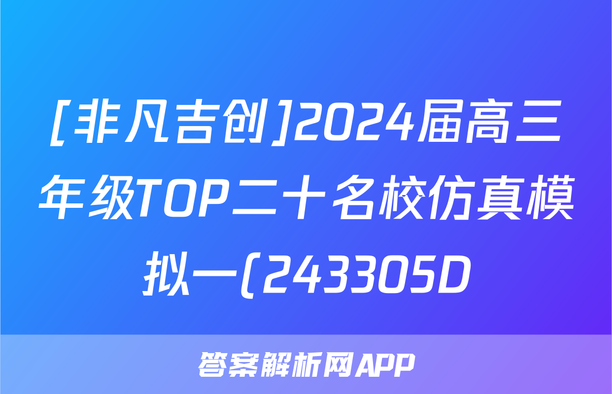 [非凡吉创]2024届高三年级TOP二十名校仿真模拟一(243305D)数学答案正在持续更新,目前2025衡水金卷单元卷答案网为大家整理了相关试题及答案,供大家查缺补漏,高效提升成绩。
