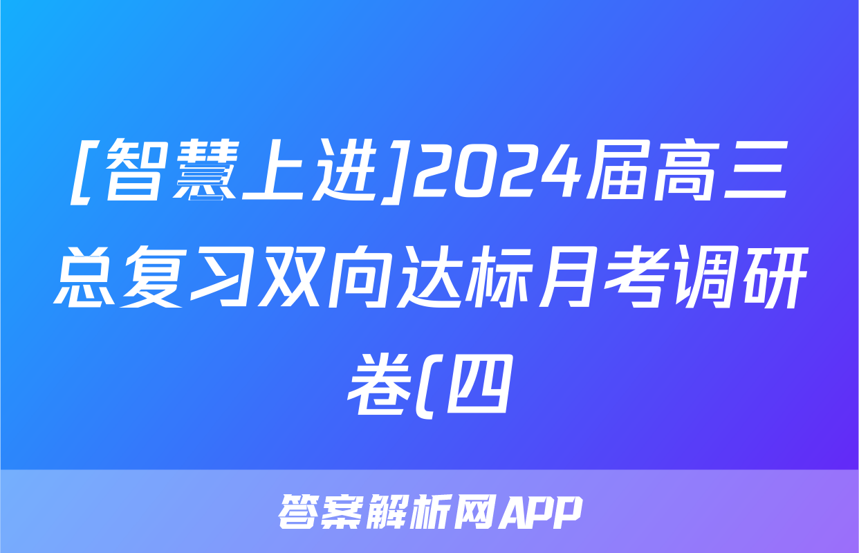 [智慧上进]2024届高三总复习双向达标月考调研卷(四)4生物答案正在持续更新,目前2025衡水金卷单元卷答案网为大家整理了相关试题及答案,供大家查缺补漏,高效提升成绩。