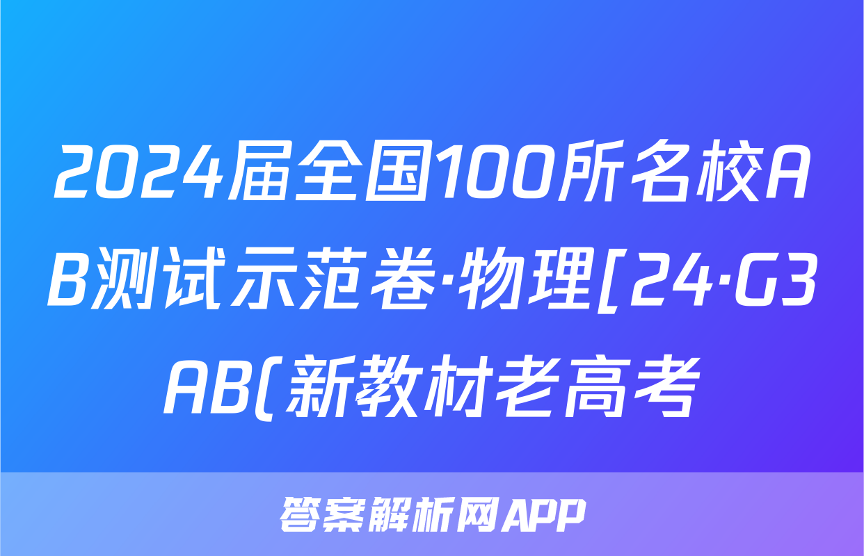 2024届全国100所名校AB测试示范卷·物理[24·G3AB(新教材老高考)·物理-LKB-必考-QG]一试题正在持续更新,目前2025衡水金卷单元卷答案网为大家整理了相关试题及答案,供大家查缺补漏,高效提升成绩。