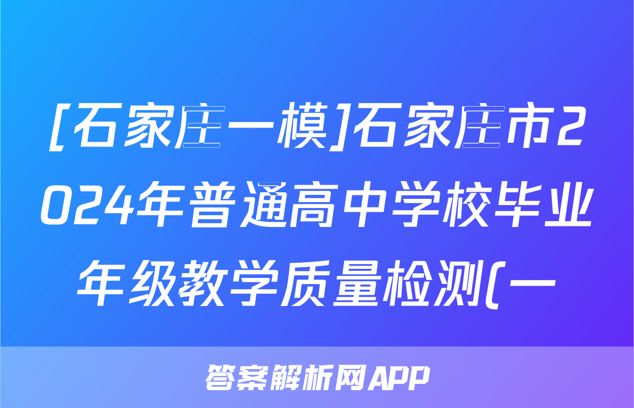 2、[石家庄一模]石家庄市2024年普通高中学校毕业年级教学质量检测(一)数学试题