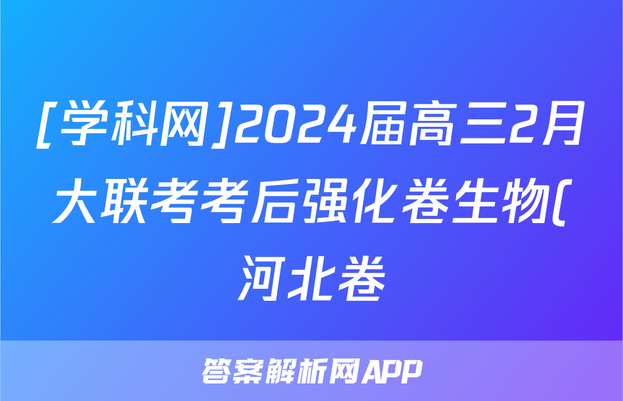 [学科网]2024届高三2月大联考考后强化卷生物(河北卷)试题正在持续更新,目前2025衡水金卷单元卷答案网为大家整理了相关试题及答案,供大家查缺补漏,高效提升成绩。