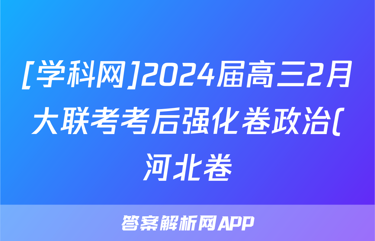 [学科网]2024届高三2月大联考考后强化卷政治(河北卷)试题正在持续更新,目前2025衡水金卷单元卷答案网为大家整理了相关试题及答案,供大家查缺补漏,高效提升成绩。