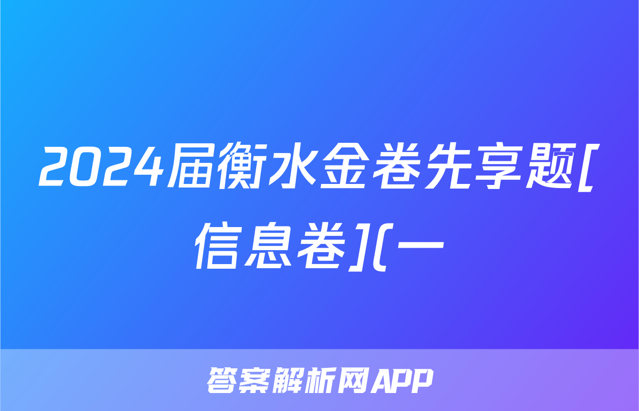 2024届衡水金卷先享题[信息卷](一)1理综(新教材C)答案正在持续更新,目前2025衡水金卷单元卷答案网为大家整理了相关试题及答案,供大家查缺补漏,高效提升成绩。