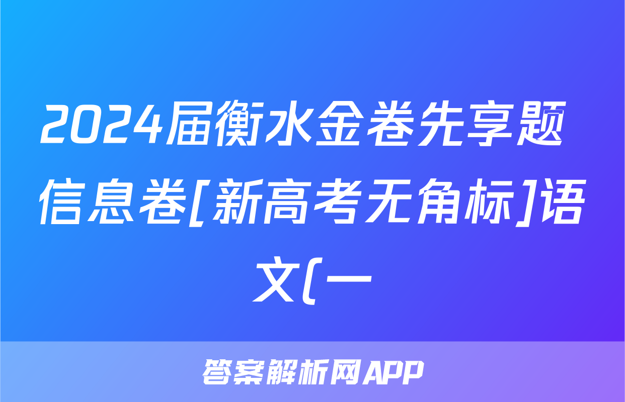2024届衡水金卷先享题 信息卷[新高考无角标]语文(一)1试题正在持续更新,目前2025衡水金卷单元卷答案网为大家整理了相关试题及答案,供大家查缺补漏,高效提升成绩。