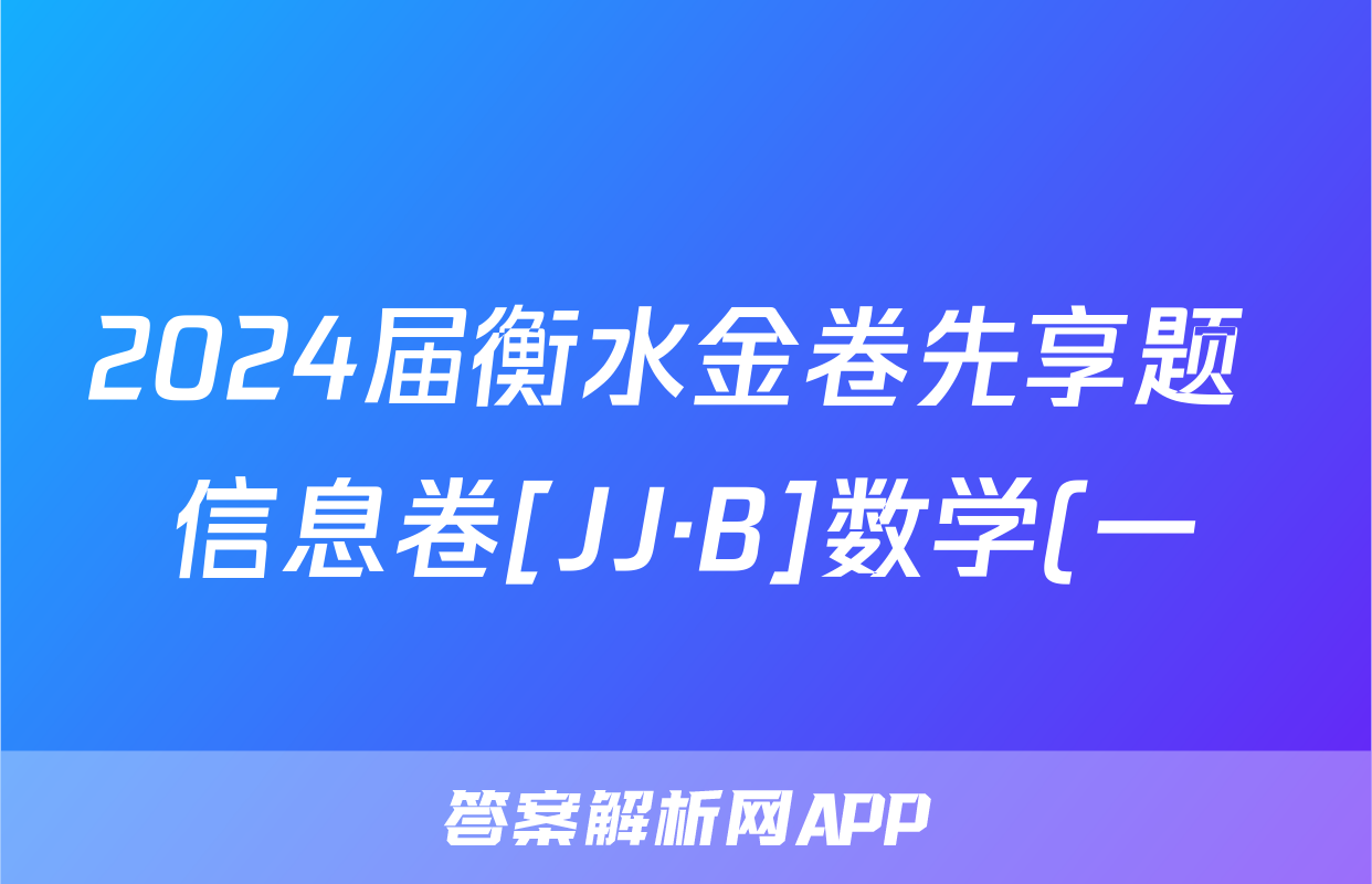 2024届衡水金卷先享题 信息卷[JJ·B]数学(一)1答案正在持续更新,目前2025衡水金卷单元卷答案网为大家整理了相关试题及答案,供大家查缺补漏,高效提升成绩。