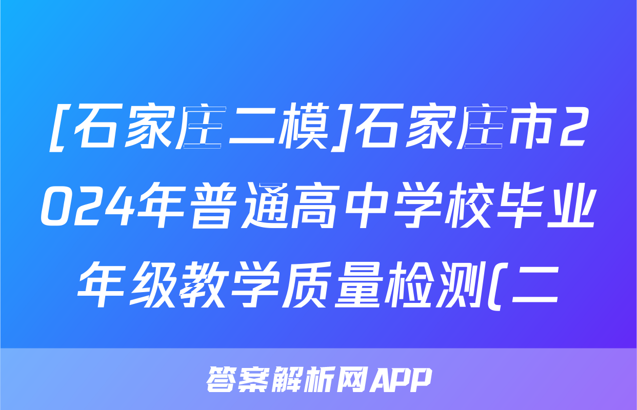 [石家庄二模]石家庄市2024年普通高中学校毕业年级教学质量检测(二)文数答案正在持续更新,目前2025衡水金卷单元卷答案网为大家整理了相关试题及答案,供大家查缺补漏,高效提升成绩。