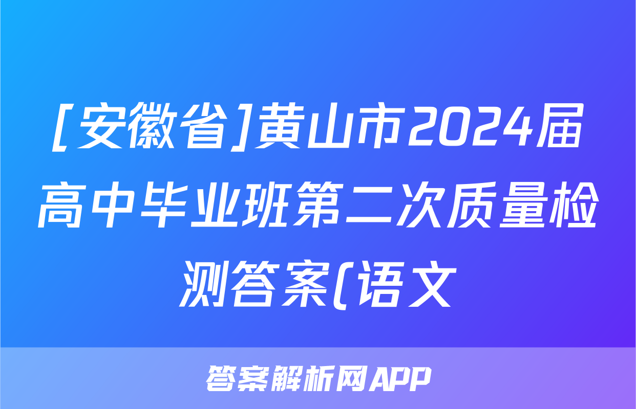 [安徽省]黄山市2024届高中毕业班第二次质量检测答案(语文)正在持续更新,目前2025衡水金卷单元卷答案网为大家整理了相关试题及答案,供大家查缺补漏,高效提升成绩。