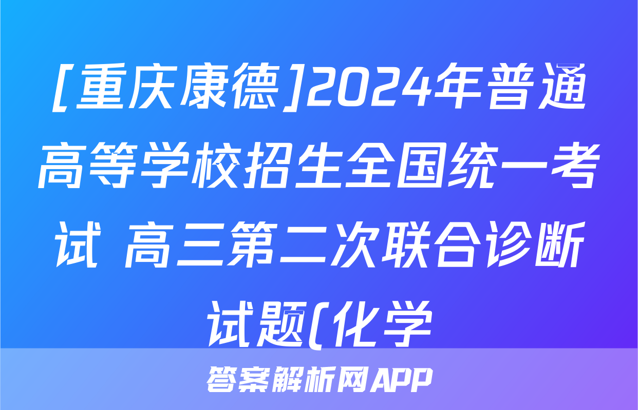 [重庆康德]2024年普通高等学校招生全国统一考试 高三第二次联合诊断试题(化学)正在持续更新,目前2025衡水金卷单元卷答案网为大家整理了相关试题及答案,供大家查缺补漏,高效提升成绩。