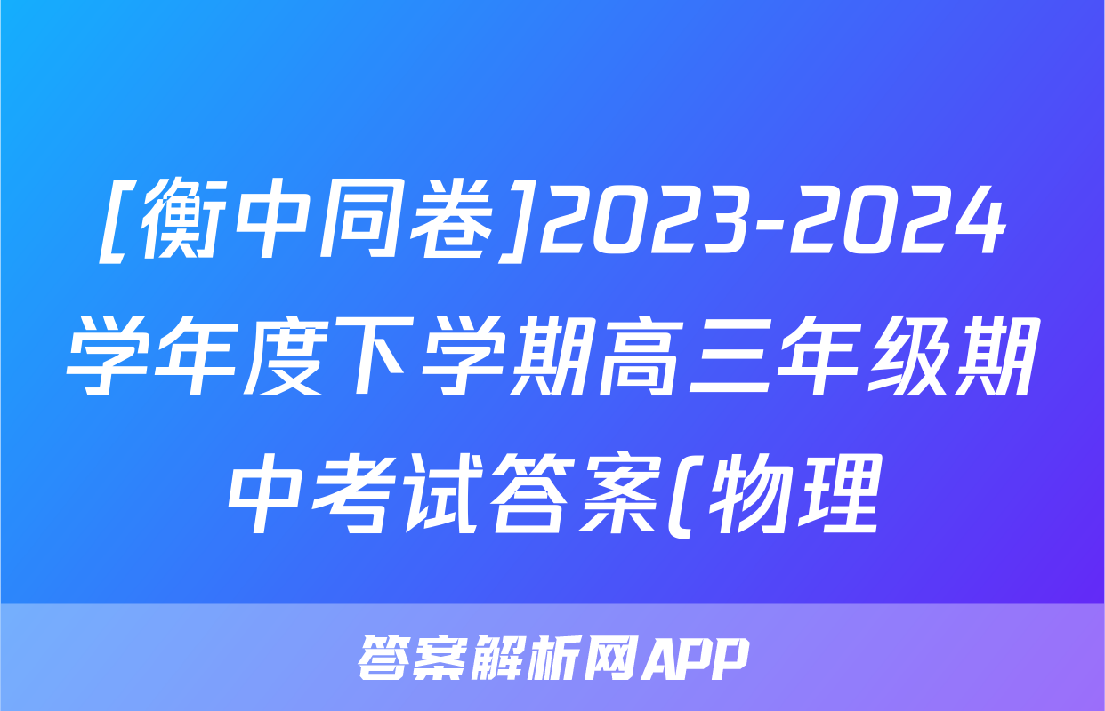 [衡中同卷]2023-2024学年度下学期高三年级期中考试答案(物理)正在持续更新,目前2025衡水金卷单元卷答案网为大家整理了相关试题及答案,供大家查缺补漏,高效提升成绩。