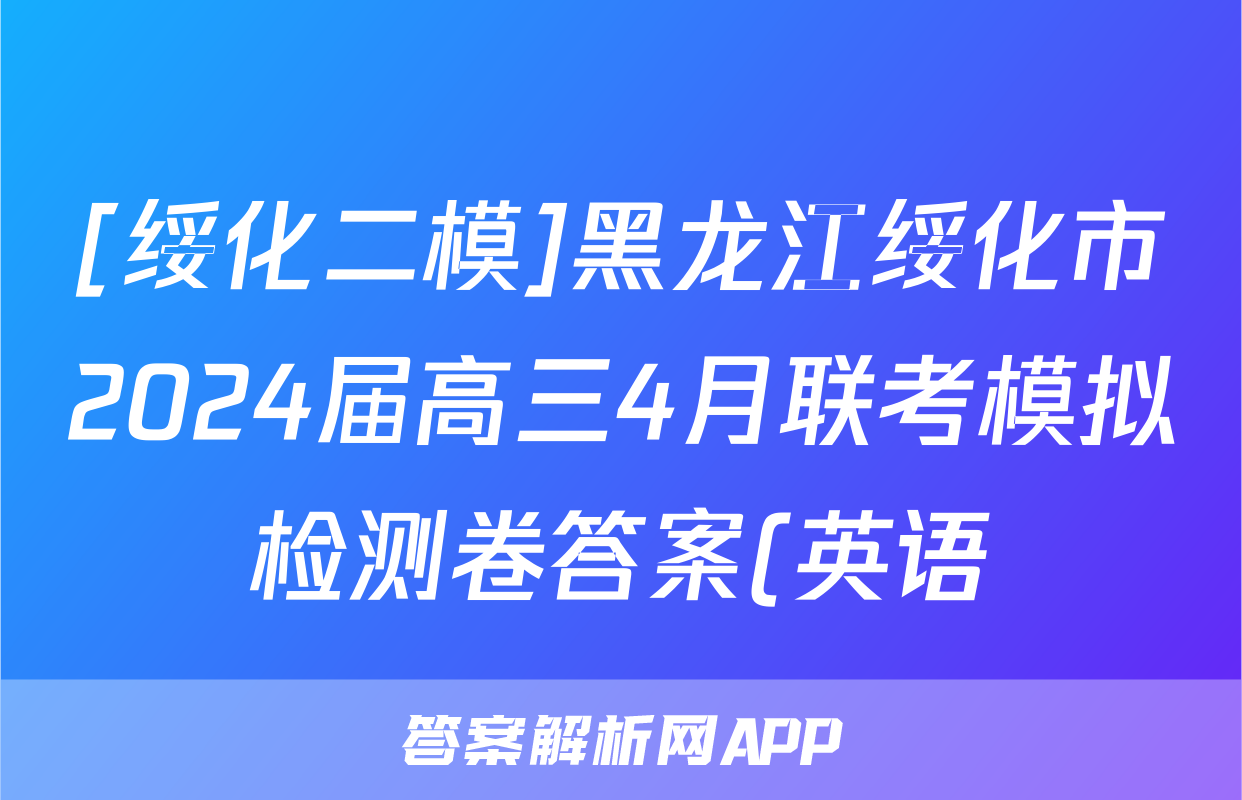[绥化二模]黑龙江绥化市2024届高三4月联考模拟检测卷答案(英语)