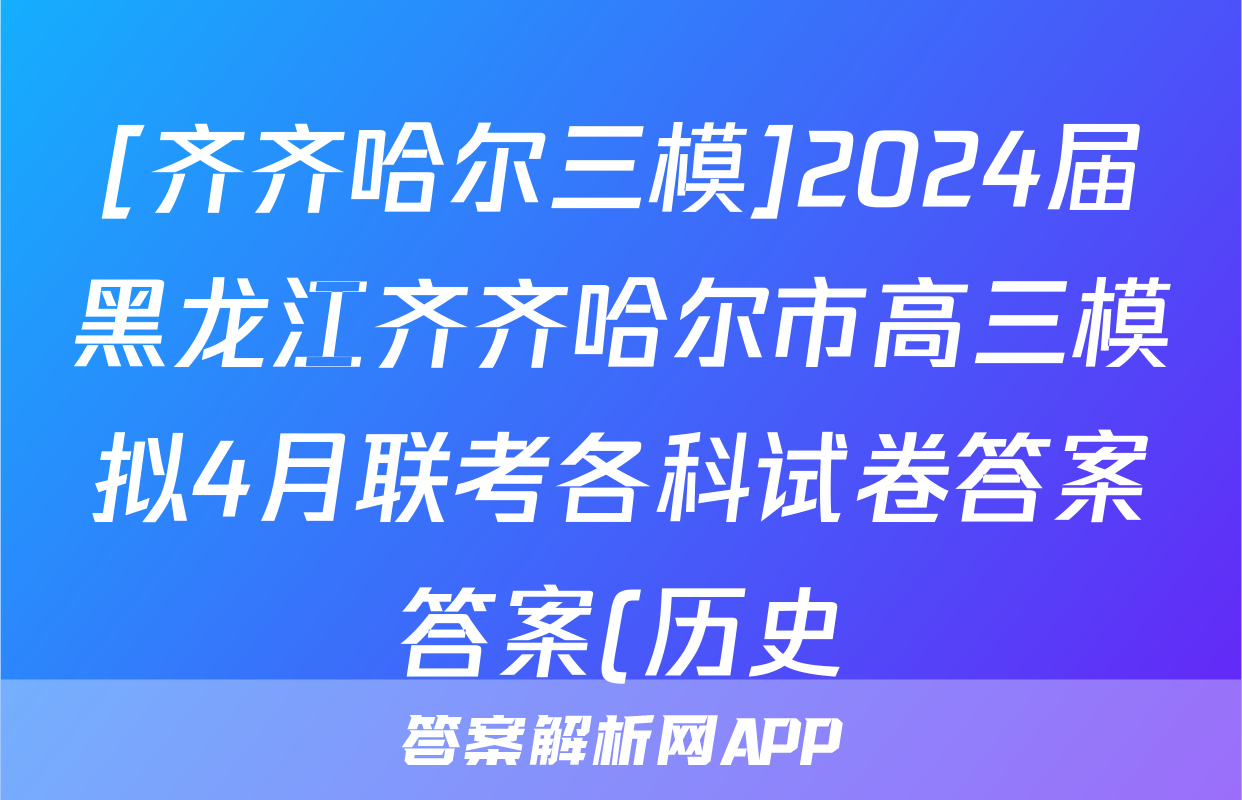 [齐齐哈尔三模]2024届黑龙江齐齐哈尔市高三模拟4月联考各科试卷答案答案(历史)正在持续更新,目前2025衡水金卷单元卷答案网为大家整理了相关试题及答案,供大家查缺补漏,高效提升成绩。