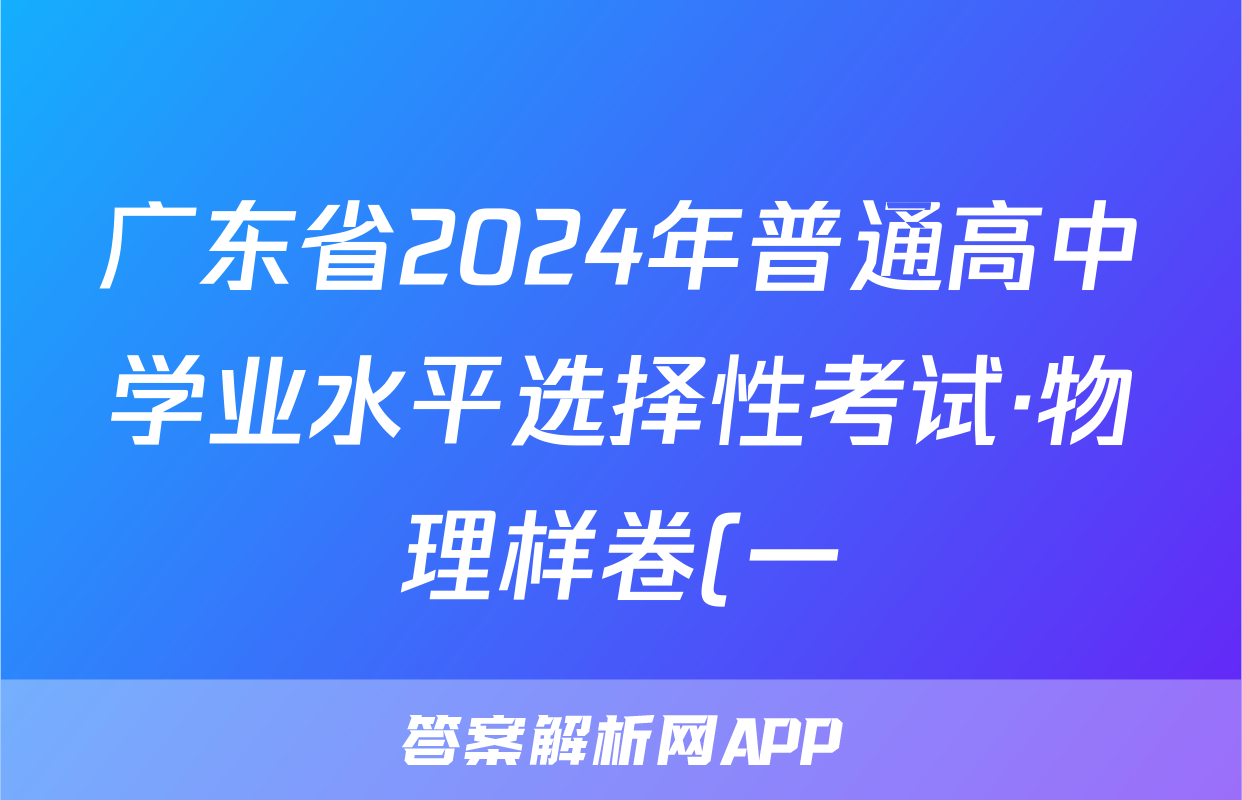广东省2024年普通高中学业水平选择性考试·物理样卷(一)1[24·(新高考)高考样卷·物理·G DONG]试题正在持续更新,目前2025衡水金卷单元卷答案网为大家整理了相关试题及答案,供大家查缺补漏,高效提升成绩。