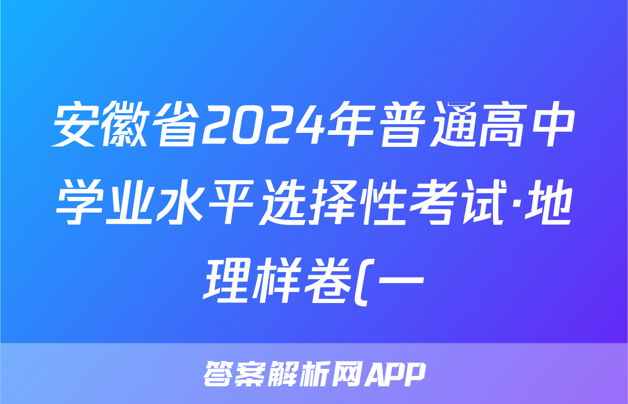 安徽省2024年普通高中学业水平选择性考试·地理样卷(一)1[24·(新高考)高考样卷·地理·AH]答案正在持续更新,目前2025衡水金卷单元卷答案网为大家整理了相关试题及答案,供大家查缺补漏,高效提升成绩。