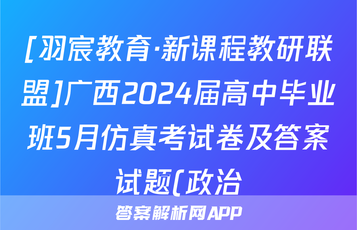 [羽宸教育·新课程教研联盟]广西2024届高中毕业班5月仿真考试卷及答案试题(政治)正在持续更新,目前2025衡水金卷单元卷答案网为大家整理了相关试题及答案,供大家查缺补漏,高效提升成绩。