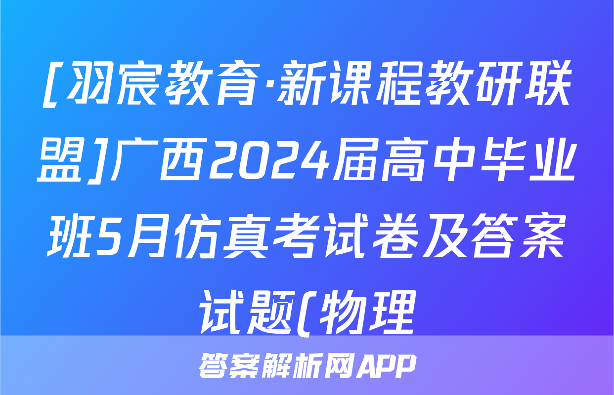 [羽宸教育·新课程教研联盟]广西2024届高中毕业班5月仿真考试卷及答案试题(物理)正在持续更新,目前2025衡水金卷单元卷答案网为大家整理了相关试题及答案,供大家查缺补漏,高效提升成绩。