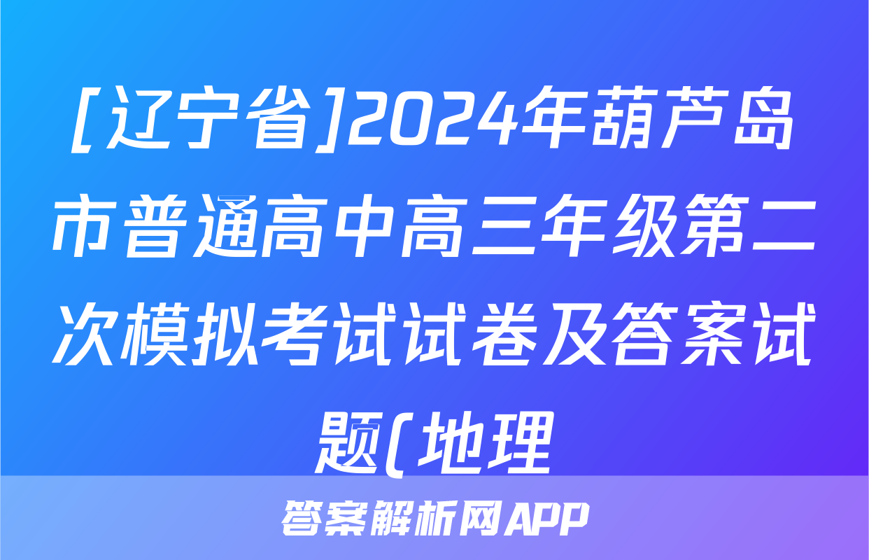 [辽宁省]2024年葫芦岛市普通高中高三年级第二次模拟考试试卷及答案试题(地理)正在持续更新,目前2025衡水金卷单元卷答案网为大家整理了相关试题及答案,供大家查缺补漏,高效提升成绩。