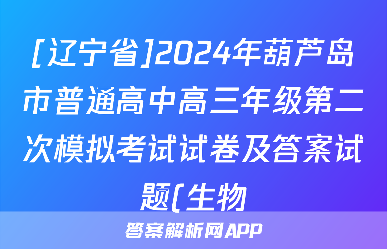 [辽宁省]2024年葫芦岛市普通高中高三年级第二次模拟考试试卷及答案试题(生物)正在持续更新,目前2025衡水金卷单元卷答案网为大家整理了相关试题及答案,供大家查缺补漏,高效提升成绩。