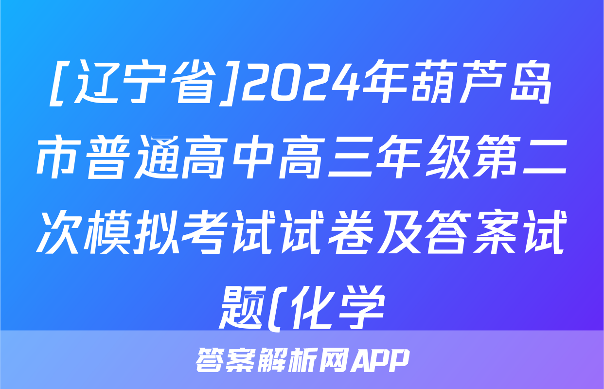 [辽宁省]2024年葫芦岛市普通高中高三年级第二次模拟考试试卷及答案试题(化学)正在持续更新,目前2025衡水金卷单元卷答案网为大家整理了相关试题及答案,供大家查缺补漏,高效提升成绩。