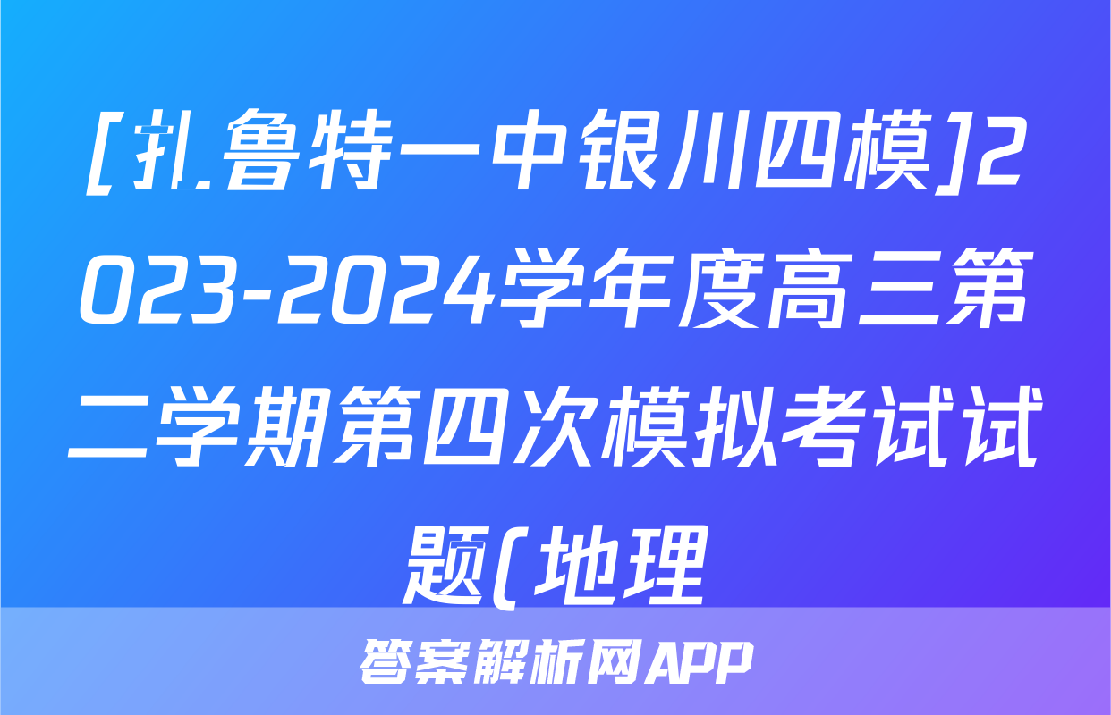 [扎鲁特一中银川四模]2023-2024学年度高三第二学期第四次模拟考试试题(地理)