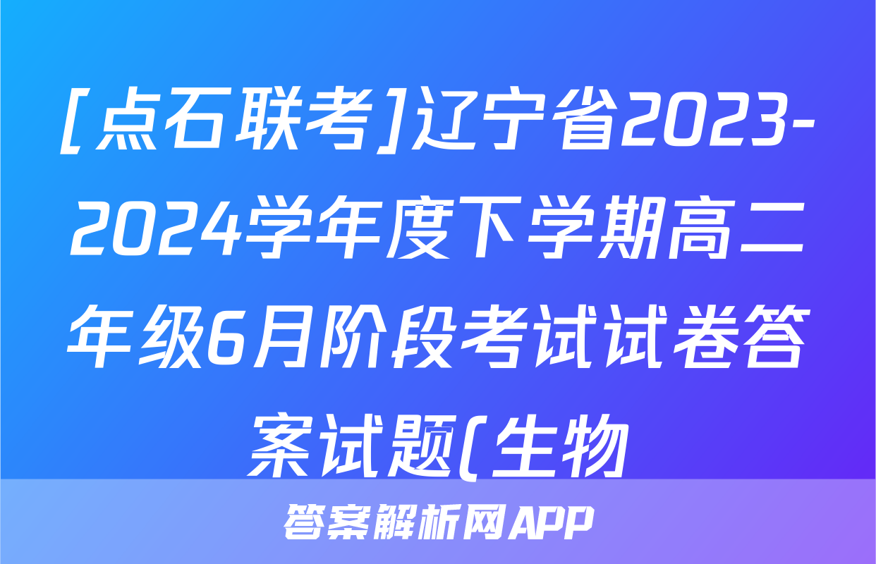 [点石联考]辽宁省2023-2024学年度下学期高二年级6月阶段考试试卷答案试题(生物)正在持续更新,目前2025衡水金卷单元卷答案网为大家整理了相关试题及答案,供大家查缺补漏,高效提升成绩。