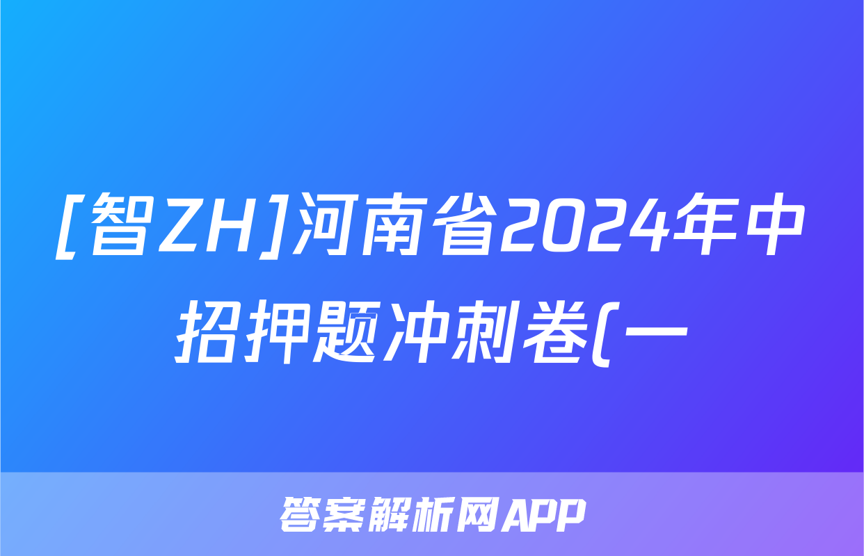 [智ZH]河南省2024年中招押题冲刺卷(一)1答案(英语)正在持续更新,目前2025衡水金卷单元卷答案网为大家整理了相关试题及答案,供大家查缺补漏,高效提升成绩。