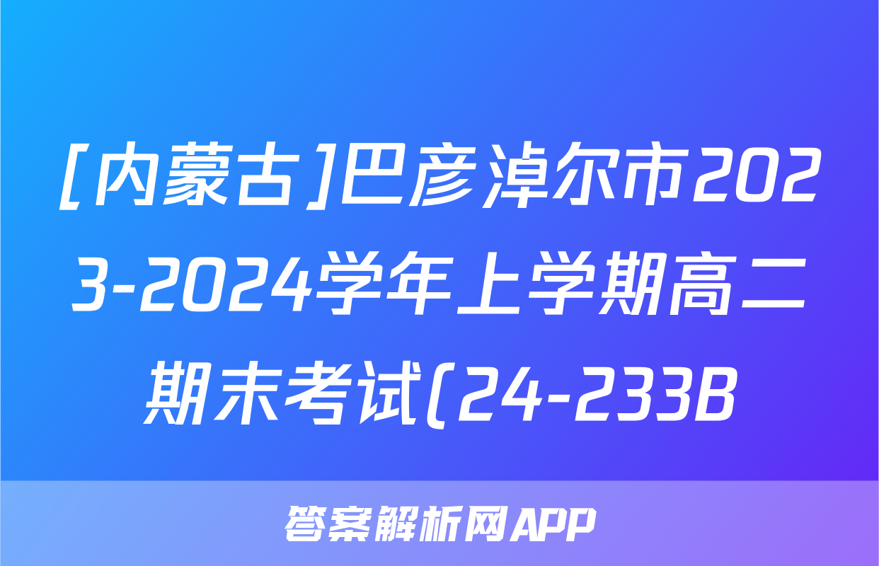 [内蒙古]巴彦淖尔市2023-2024学年上学期高二期末考试(24-233B)政治答案正在持续更新,目前2025衡水金卷单元卷答案网为大家整理了相关试题及答案,供大家查缺补漏,高效提升成绩。