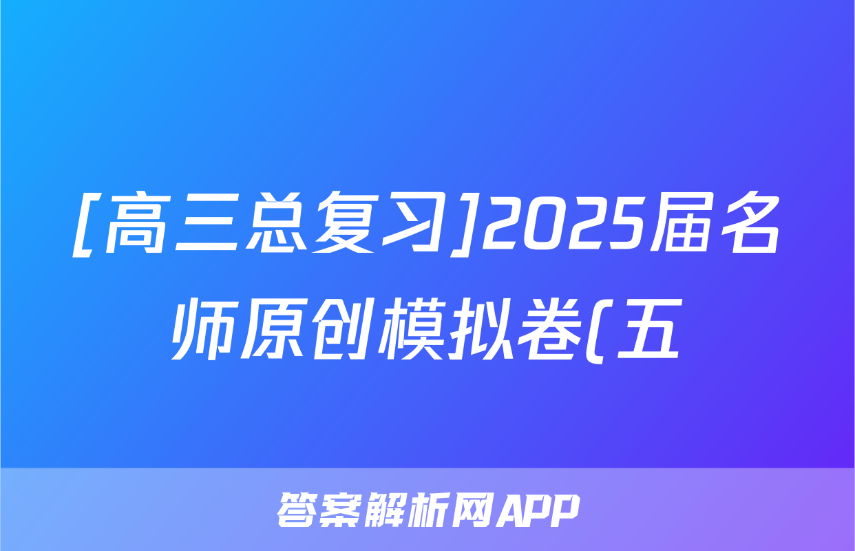 [高三总复习]2025届名师原创模拟卷(五)5化学(CQX5)答案正在持续更新,目前2025衡水金卷单元卷答案网为大家整理了相关试题及答案,供大家查缺补漏,高效提升成绩。