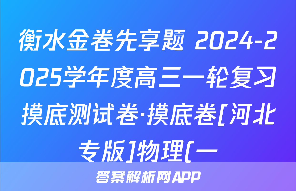 衡水金卷先享题 2024-2025学年度高三一轮复习摸底测试卷·摸底卷[河北专版]物理(一)1答案正在持续更新,目前2025衡水金卷单元卷答案网为大家整理了相关试题及答案,供大家查缺补漏,高效提升成绩。
