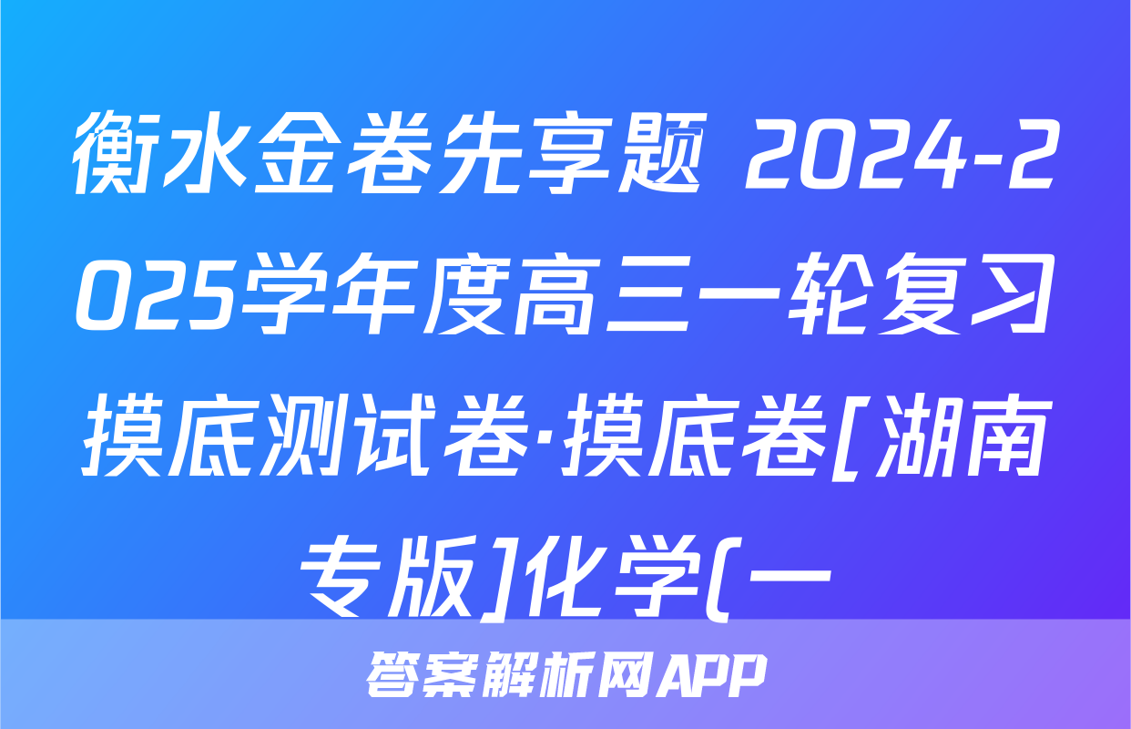 衡水金卷先享题 2024-2025学年度高三一轮复习摸底测试卷·摸底卷[湖南专版]化学(一)1试题正在持续更新,目前2025衡水金卷单元卷答案网为大家整理了相关试题及答案,供大家查缺补漏,高效提升成绩。