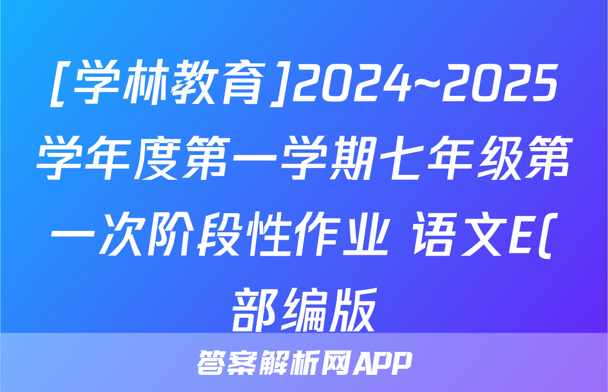 [学林教育]2024~2025学年度第一学期七年级第一次阶段性作业 语文E(部编版)试题正在持续更新,目前2025衡水金卷单元卷答案网为大家整理了相关试题及答案,供大家查缺补漏,高效提升成绩。