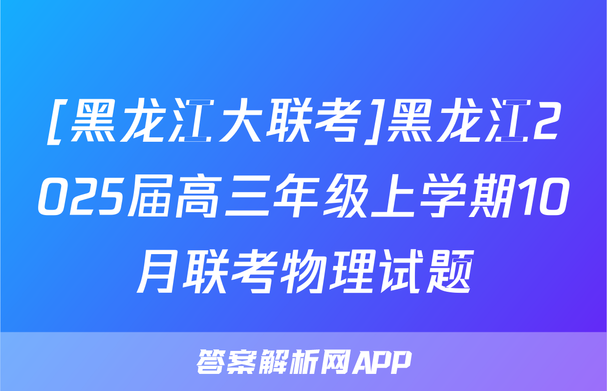 [黑龙江大联考]黑龙江2025届高三年级上学期10月联考物理试题