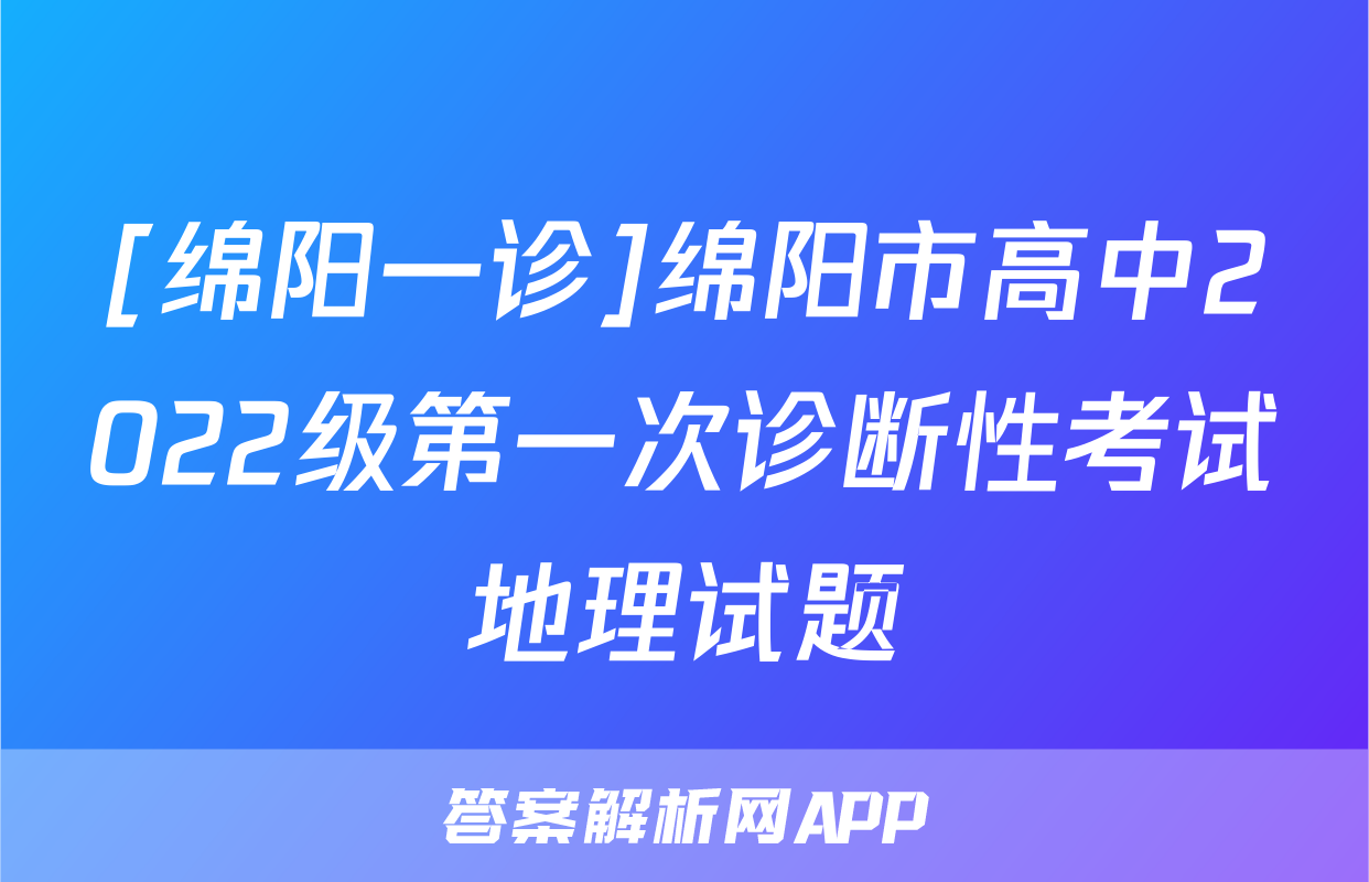 [绵阳一诊]绵阳市高中2022级第一次诊断性考试地理试题正在持续更新,目前2025衡水金卷单元卷答案网为大家整理了相关试题及答案,供大家查缺补漏,高效提升成绩。