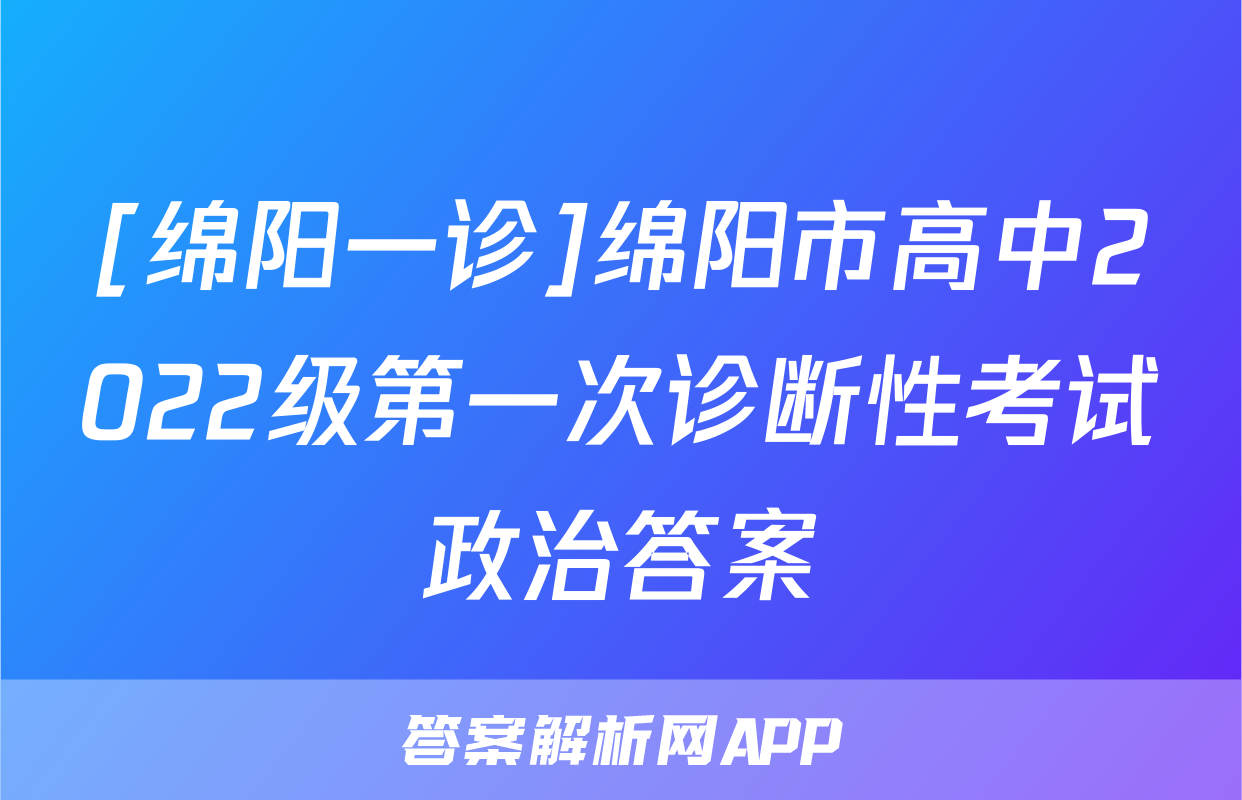 [绵阳一诊]绵阳市高中2022级第一次诊断性考试政治答案正在持续更新,目前2025衡水金卷单元卷答案网为大家整理了相关试题及答案,供大家查缺补漏,高效提升成绩。