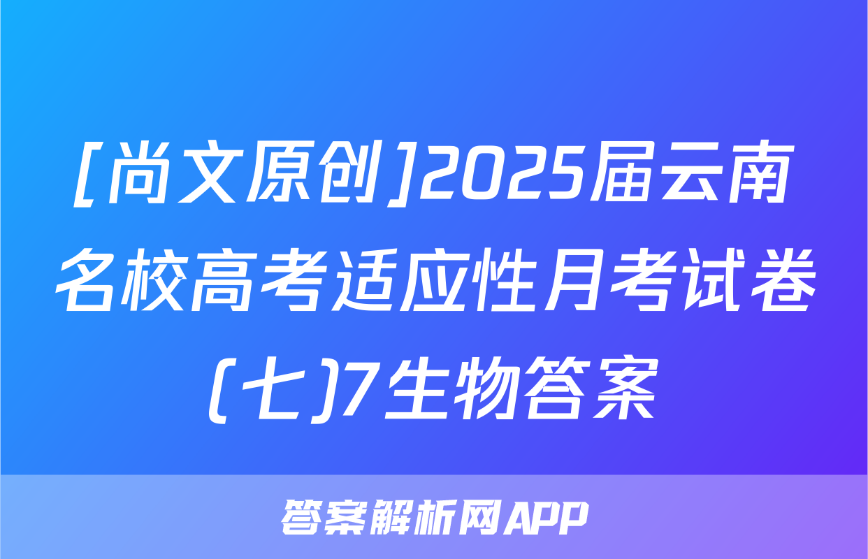 [尚文原创]2025届云南名校高考适应性月考试卷(七)7生物答案正在持续更新,目前2025衡水金卷单元卷答案网为大家整理了相关试题及答案,供大家查缺补漏,高效提升成绩。