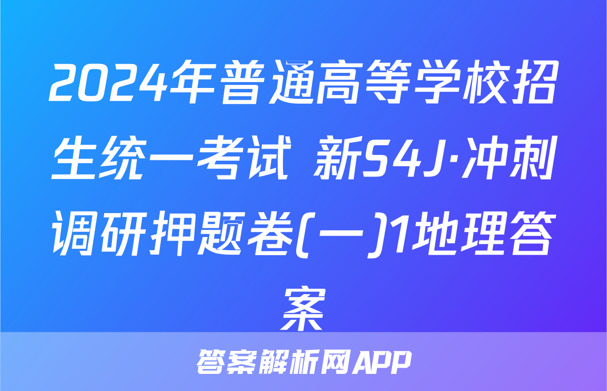 <p>1、2024年普通高等学校招生统一考试 新S4J·冲刺调研押题卷(一)1地理答案</p><br><p><p>1、2024年普通高等学校招生统一考试 S4·冲刺调研押题卷(一)1政治答案</...
