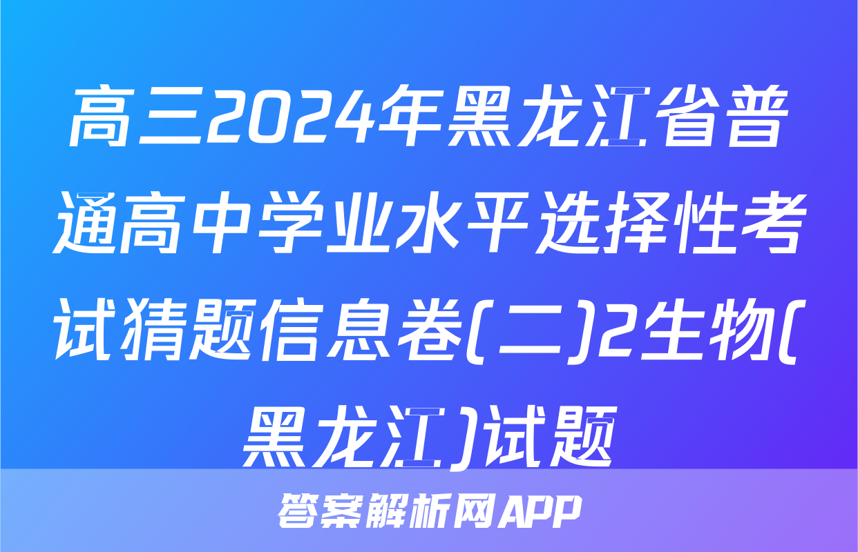<p>1、高三2024年黑龙江省普通高中学业水平选择性考试猜题信息卷(三)3生物(黑龙江)试题</p><br><p><p>1、2024届全国100所名校单元测试示范卷·生物[24·G3DY(新高...