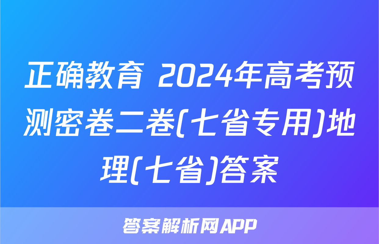 <p>1、正确教育 2024年高考预测密卷二卷(七省专用)地理(七省)答案</p><br><p><p>1、[正确教育] 2024年高考预测密卷一卷(山东地区专用)地理答案</p><br><p><p>1、...