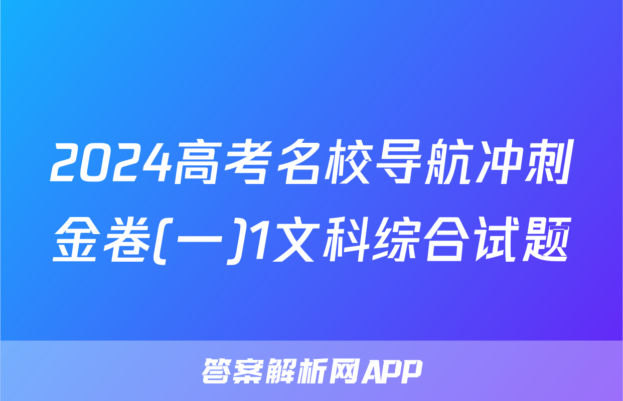 <p>1、2024高考名校导航冲刺金卷(一)1文科综合答案</p><br><p><p>1、2024高考名校导航冲刺金卷(一)1文科数学答案</p><br><p><p>1、2023全国一百所名校最新高考冲...