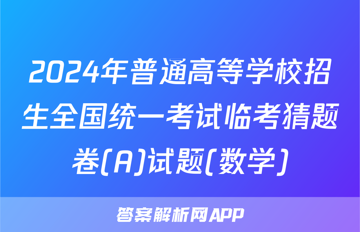 <p>1、2024年普通高等学校招生全国统一考试临考猜题卷(AA)试题(数学)</p><br><p><p>1、2024年普通高等学校招生全国统一考试临考猜题卷(AA)答案(数学)</p><br><p>...