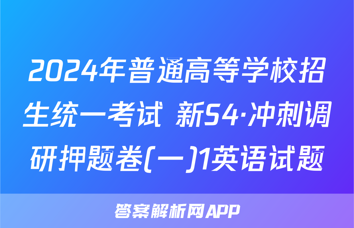 <p>1、高考快递 2024年普通高等学校招生全国统一考试·押题卷(一)1英语(新高考)试题</p><br><p><p>1、[高考快递]2024年普通高等学校招生全国统一考试·押题卷(八)8...